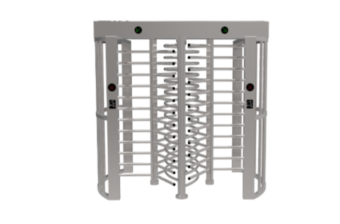 旋轉閘(全高雙門)是一款可靠性高的全高十字旋轉門,整機結構巧妙設計,安裝維護方便,配置標準的機電裝置,可防止同一時間雙人通過,液壓減震裝置保證設備平穩運行。同時為了滿足消防通道的要求,如遇緊急情況或斷電,可設為故障保護模式,即轉軸自由旋轉,切換為自由雙向通行模式。